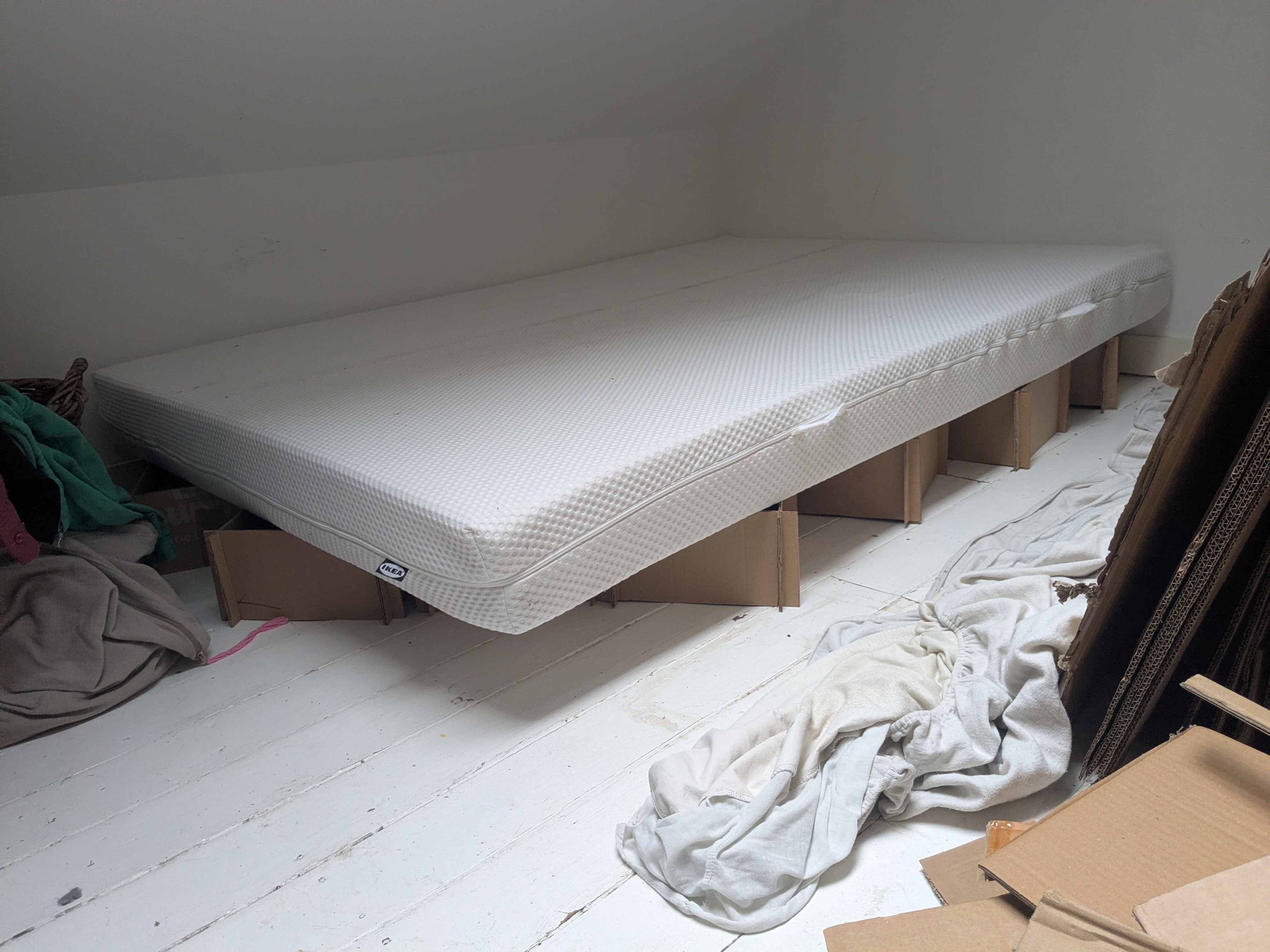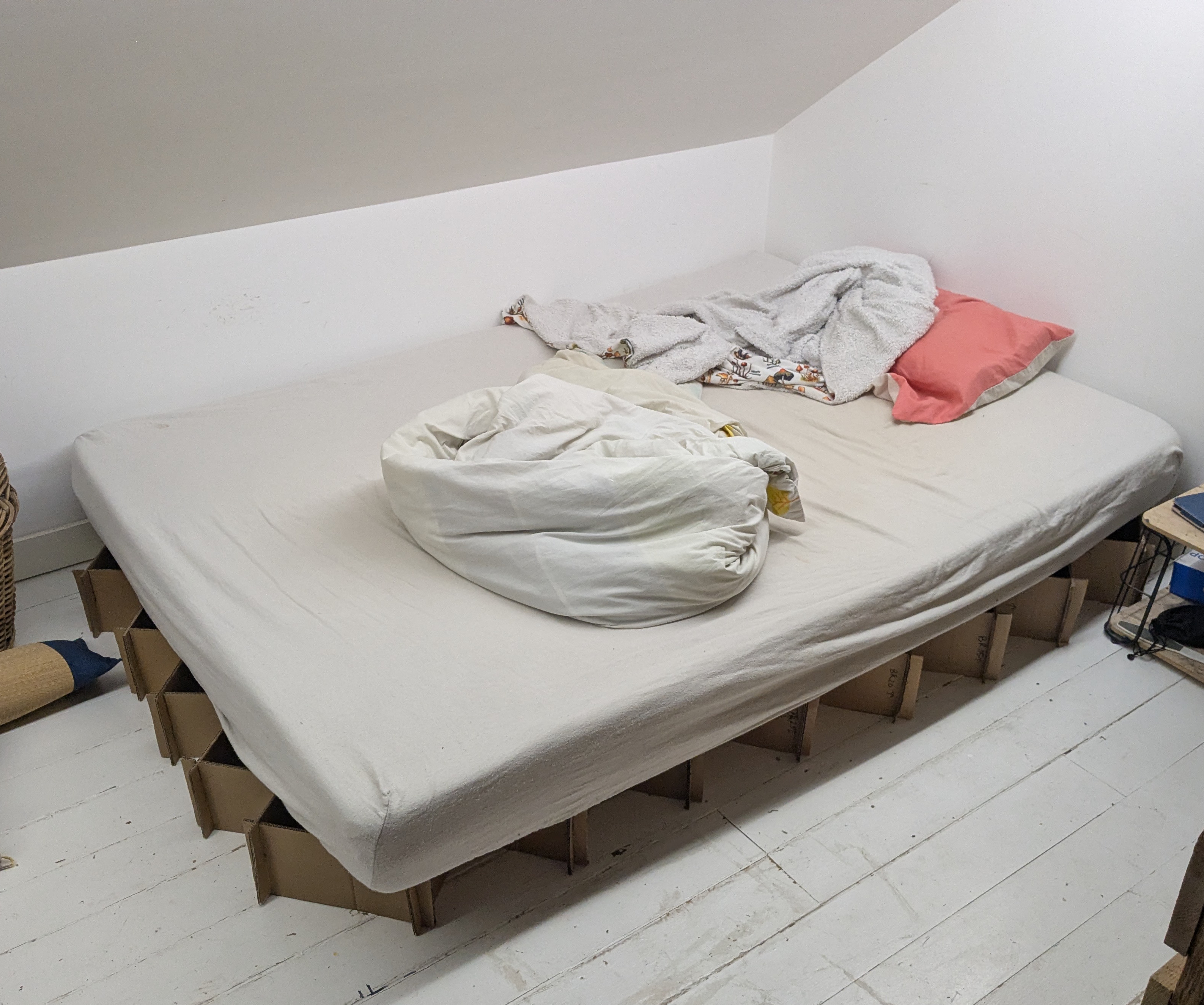 I made a cardboard frame for my new mattress one of my flatmates generously gave to me.