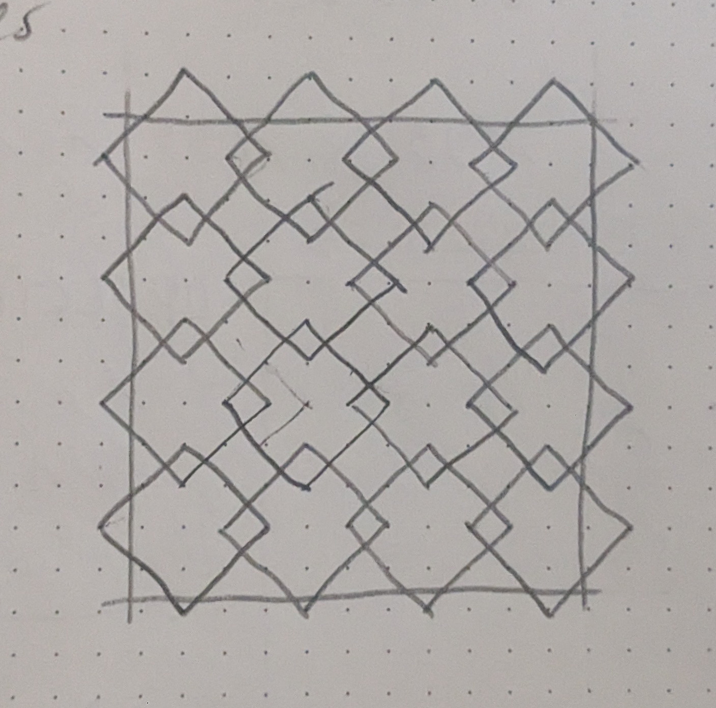 Then came the moment when I tried to determine how many squares I would need to build . My first approach was to draw them by hand. This immediately fell short, since I couldn't precisely determine the spacing of squares precisely.